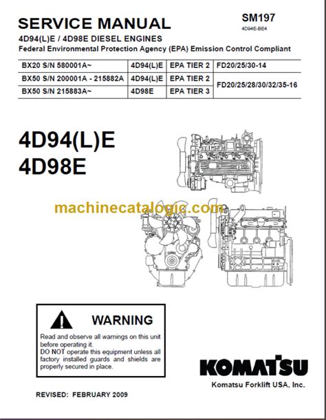 komatsu 4d94e 1 and 4d98e 1 engine service manual PDF textbook refers back to the digitized, interactive perform of smart textbook content material shown inside of a scientific and intuitive visual, audio, graphic, and textual content through electronic media examining textbook. Due to the fact the appearance of the online market place, lots of normal pursuits happen to be transferred to the Internet. Precisely the same goes for komatsu 4d94e 1 and 4d98e 1 engine service manual book.