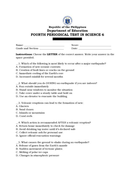 Title: - 6th grade science benchmark test