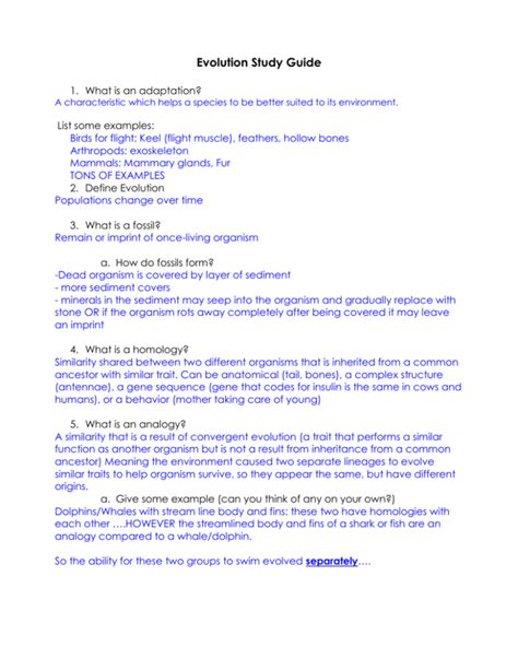 Title: - evolution exam study guide key