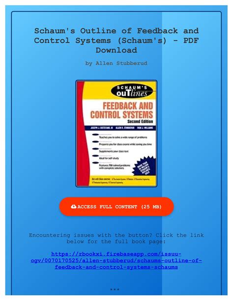 We all know that reading feedback control systems schaum series solution manual is beneficial, because we can easily get a lot of information in the reading materials. Technology has developed, and reading feedback control systems schaum series solution manual books could be far more convenient and easier. We are able to read books on our mobile, tablets and Kindle, etc. Hence, there are lots of books coming into PDF format. Listed below are some link for downloading free feedback control systems schaum series solution manual PDF book which you could acquire just as much knowledge as you desire.