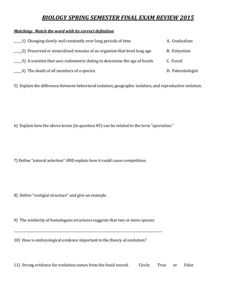 Title: - biology spring semester final review guide 2015