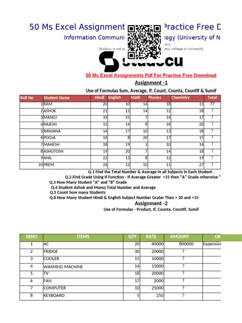 Title: - microsoft excel assignments for high school students